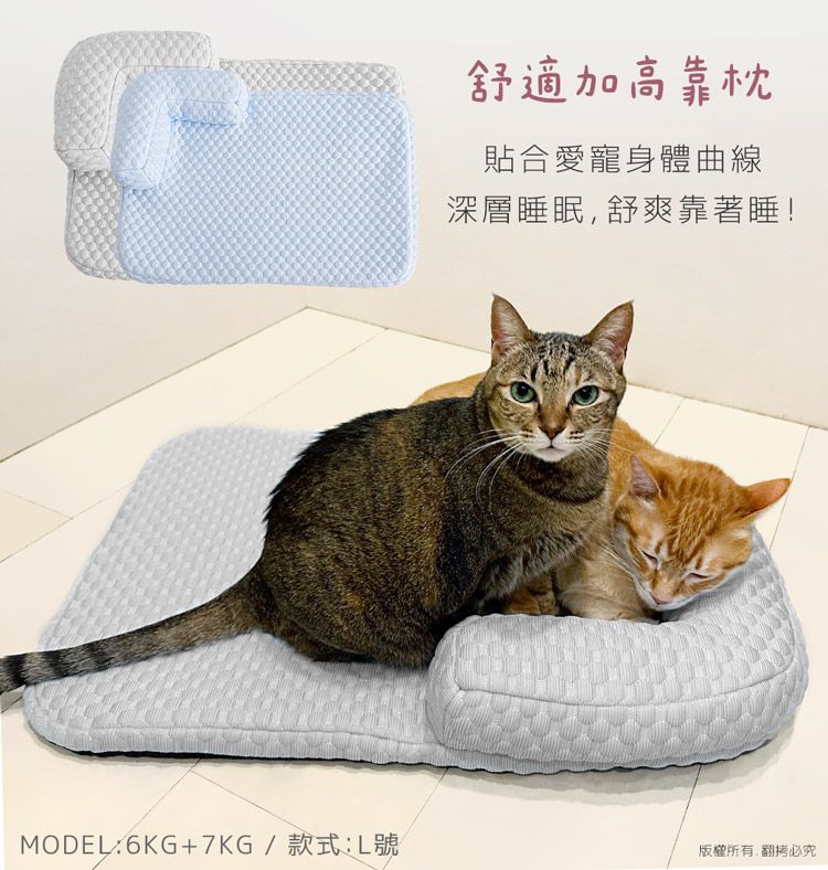 貓本屋 冰豆豆涼感 可拆洗靠枕寵物睡墊(L號/65x50cm)★貓狗適用★ --溫和迅速降溫,涼爽舒適,告別黏膩!-- 炎炎夏日,擔心冷氣費貴、更怕獨自留在家中的毛孩們太熱!尤其毛小孩的體溫又比人略高,除了通風的環境、提供充足的水份之外還能提供什麼避暑良方呢? 【冰豆豆涼感 可拆洗靠枕寵物睡墊】,採用冰豆豆涼感冰絲面料,皮膚接觸這種面料,會感到冰涼滑順,夏天不再擔心毛小孩太熱,不用吹冷氣也可以涼涼的!絕對是今年夏天的不二選擇! 底部海綿墊可拆出,方便清洗易打理!L型靠枕內部填充高回彈的PP棉,如雲朵般蓬鬆柔軟,舒爽靠著睡,可放置於籠子、推車、地板、沙發上…等,趕快使用降溫墊,讓毛小孩擁有一個涼爽的休憩環境吧! ※欲清理時,請先將底部的海綿墊取出,使用溫水手洗, 並搭配中性潔劑,清洗完畢後請放至通風處晾乾即可!※請避免使用尖銳物割刺、或是寵物啃咬,以免造成破損。※若沾染髒污時,請立即使用濕布擦拭,避免長時間滲透!※本產品不可漂白、不可熨燙、不可烘乾! 注意事項: .本商品為接觸型商品,為避免傳染性疾病(如:跳蚤/壁蝨/疥癬…等) 一經開封或試用過,恕不受理更換事宜。.本產品僅供寵物使用,請勿做其他用途。.若於溫度35℃以上的環境使用,可搭配電扇或空調,可提高使用效果。.收納存放時,請放置於陰涼乾燥處,請避免靠近火源/高溫/陽光直射。.欲清理時,可直接水洗,並搭配中性潔劑,清洗完畢時直接陰乾。.請避免使用尖銳物割刺、或是寵物啃咬,以免造成布面破損。.商品圖檔顏色因電腦螢幕設定差異會略有不同,以實際商品顏色為準。.購買前仔細詳閱商品規格尺寸,慎重購買,以免造成日後買賣糾紛。.所有的規格與重量皆採手工測量,誤差±5%屬正常範圍。 轉載敬告: 鈞嵐(立嵐)之商品圖文、影片或商標等,皆屬鈞嵐(立嵐)版權所有, 若未經同意即任意轉載刊登者,我司將進行相關智慧財產著作權與 商標權及商業法的追訴權利。 商品規格: .型 號:OO-P-SN08L.品 名:貓本屋 冰豆豆涼感 可拆洗靠枕寵物睡墊(L號).款 式:粉藍/淺灰.尺 寸:約 65 x 50 x 2.4 cm / 靠枕厚 8 cm.重 量:約 534 g.材 質:涼感布、海綿、PP棉、防滑顆粒.包裝方式:袋裝.包裝內含:冰豆豆涼感寵物睡墊 x1.商品保固:僅限新品瑕疪更可換商品.產 地:中國大陸