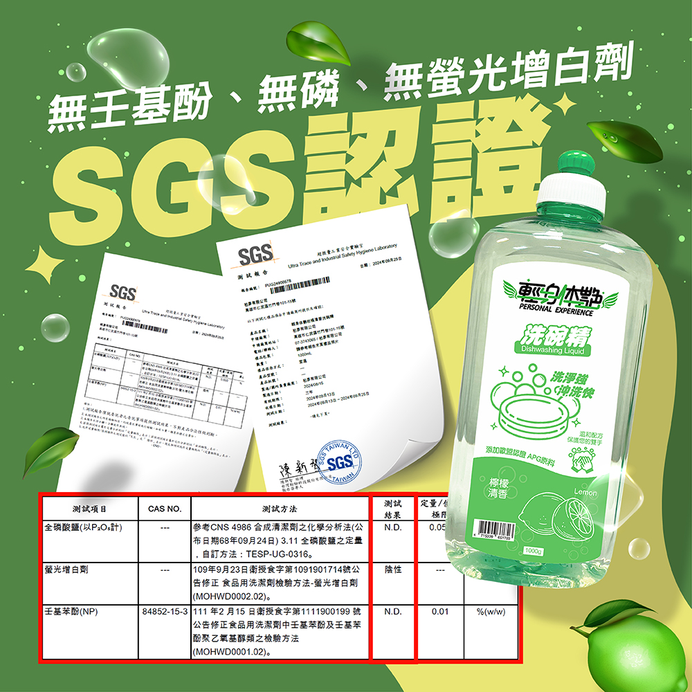主要成分:純水、椰子油醇聚醚硫酸酯鈉、棕櫚油醇聚醚硫酸酯鈉鹽、葡萄糖苷(APG)、冷壓檸檬油。
