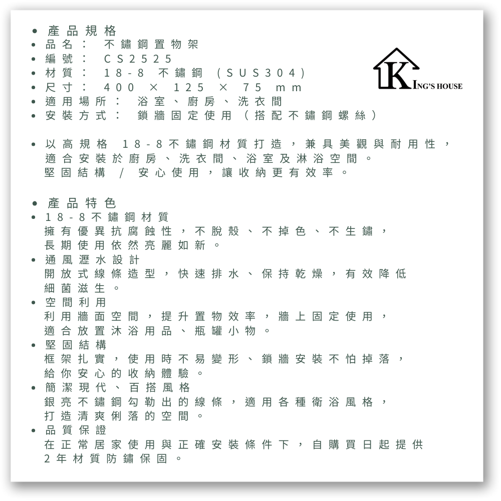 安裝方式: 鎖牆固定使用(搭配不鏽鋼螺絲)