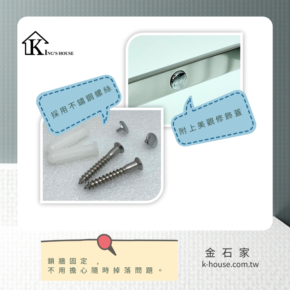 安裝方式: 鎖牆固定使用(搭配不鏽鋼螺絲)