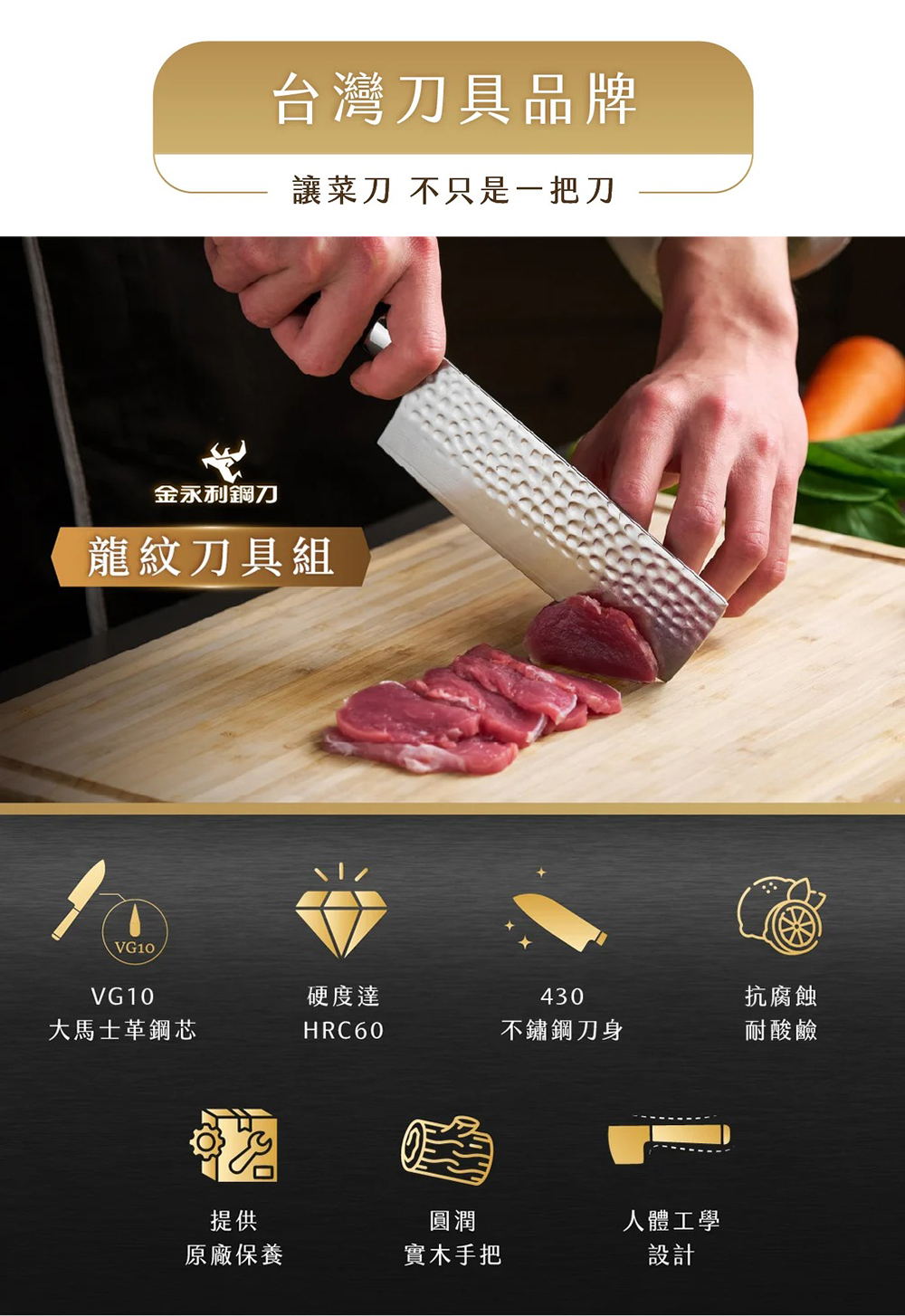 【 金永利|龍紋刀具組 】極致銳利 四代技藝傳承打造家用刀具巔峰手工打紋的刀面嚴選不鏽鋼複合材質