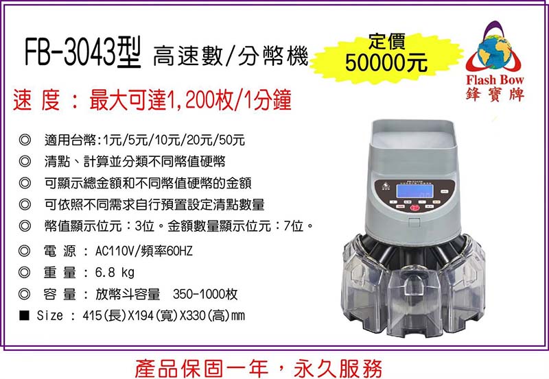 鋒寶牌 銀行點幣 高速 數幣機 點幣機 分幣機 / 台 FB-3043 (台幣)