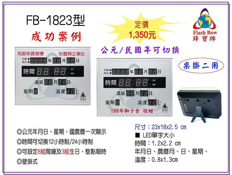 鋒寶牌 壁掛式 桌掛式 電子日曆 數位日曆 萬年曆 23X18X2.5cm / 台 FB-1823 (公元/民國年可切換)