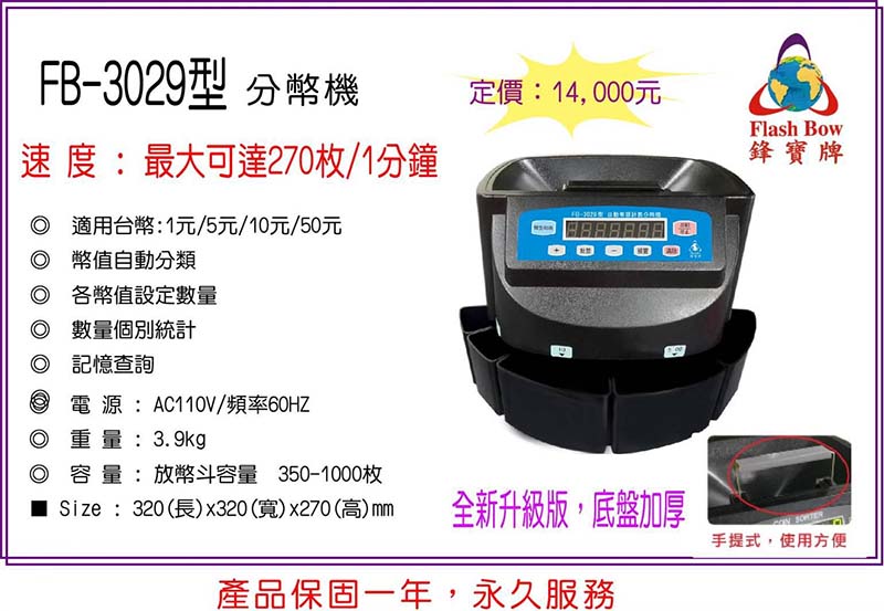 鋒寶牌 銀行點幣 數幣機 點幣機 分幣機 / 台 FB-3029 (台幣)