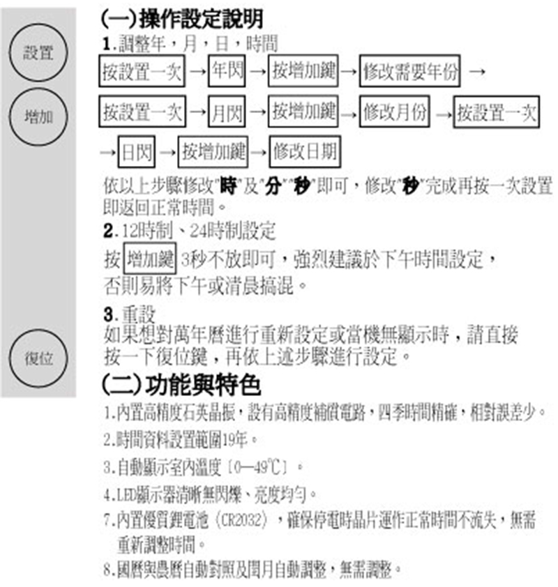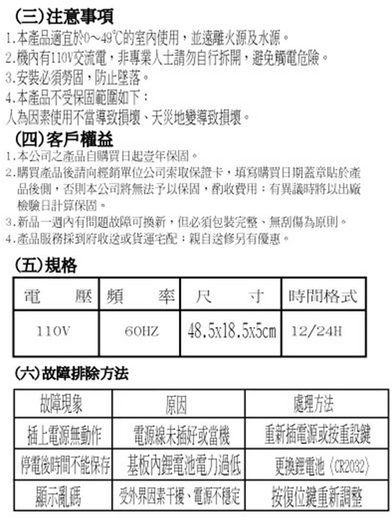 【商品規格】公元年月日、星期、溫度、時間、國農曆一次顯示可設定6組鬧鐘及整點報時.24小時制顯示停電時內部照常運作,來電時依舊準確不須調整■ Size 102.5x30x5 cmLED單字大小公元年月日、星期、農曆、溫度 :1.2x2cm時間:9.3x15.7 cm廠商代號:Z11責任代號:QMW