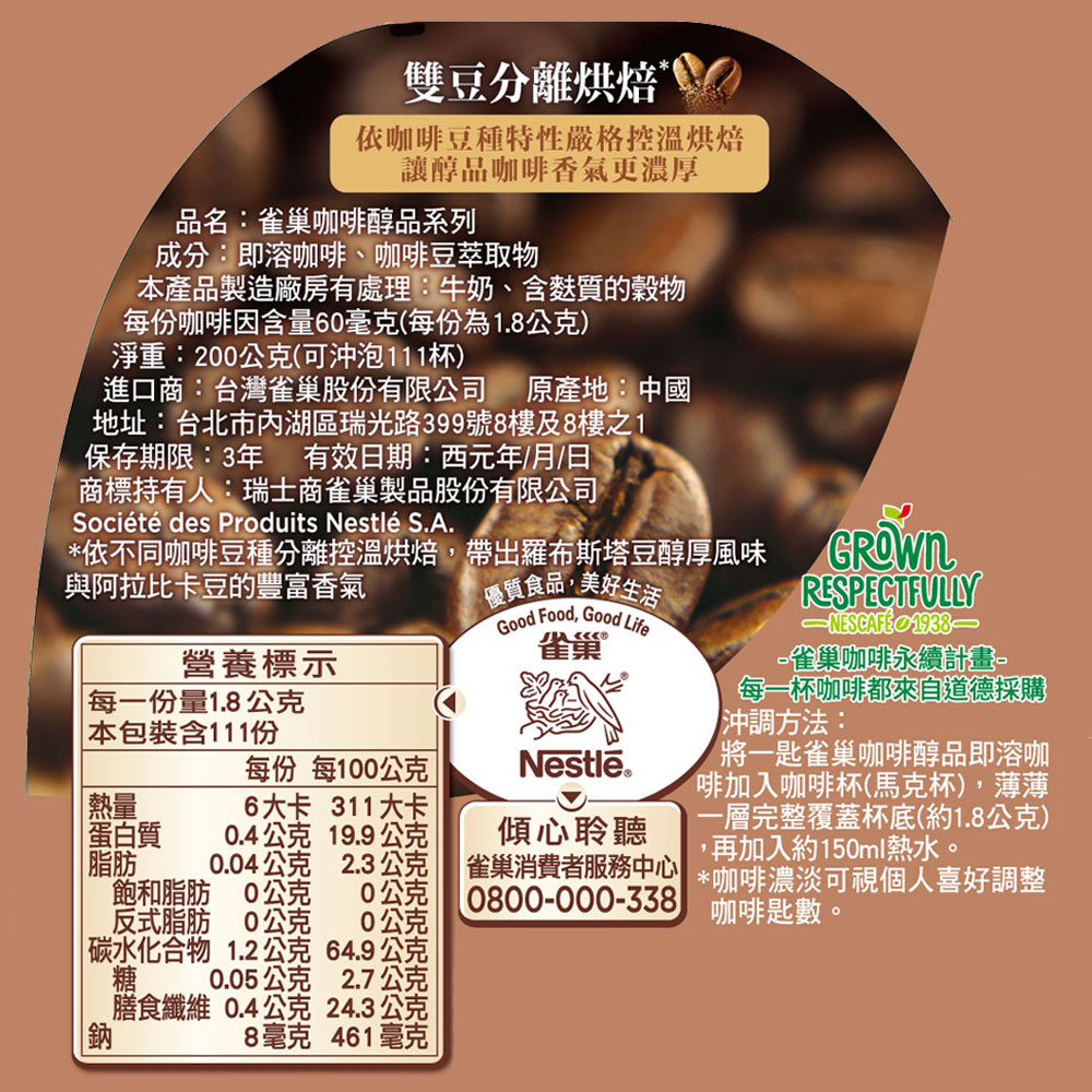 ◎Brand:雀巢 ◎Specifications: 200g克 x 1 x 1Bottle瓶