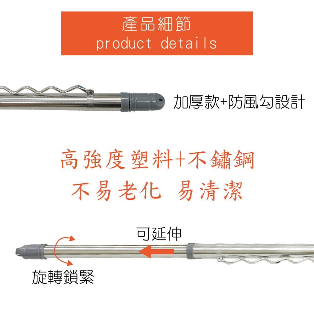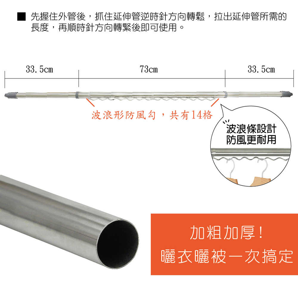 【雙手萬能】防風型1.4米不鏽鋼曬衣桿(伸縮衣架/加厚款/竹竿/衣竿)
