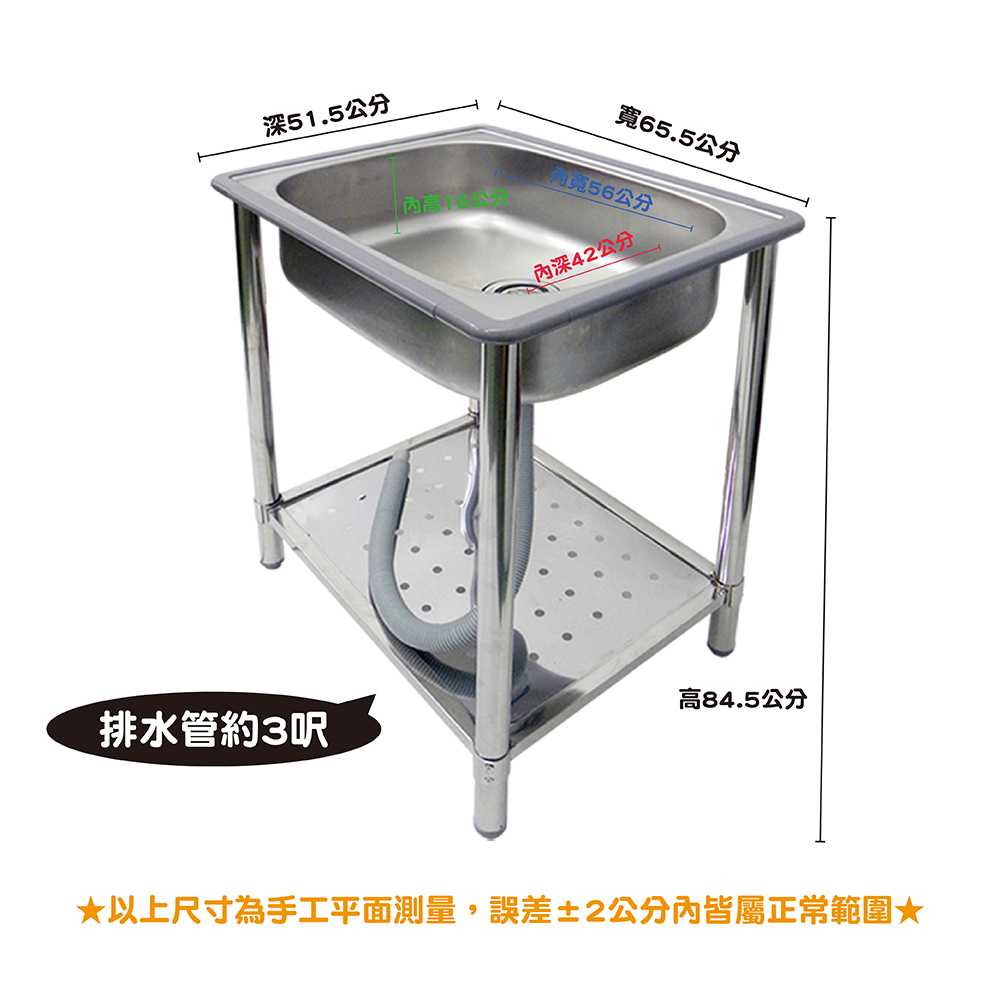 【雙手萬能】65公分304不鏽鋼水槽(台灣製造/洗衣槽/流理臺)