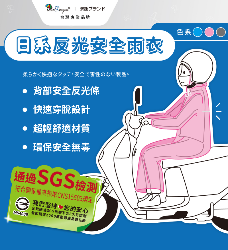 [Twin Dragon] Ultra-Light Reflective Safety Raincoat Set EV4395 – Aqua Blue