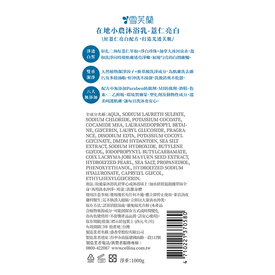 ◎Brand:雪芙蘭 ◎Specifications: 1000g克 x 1 x 1PC瓶