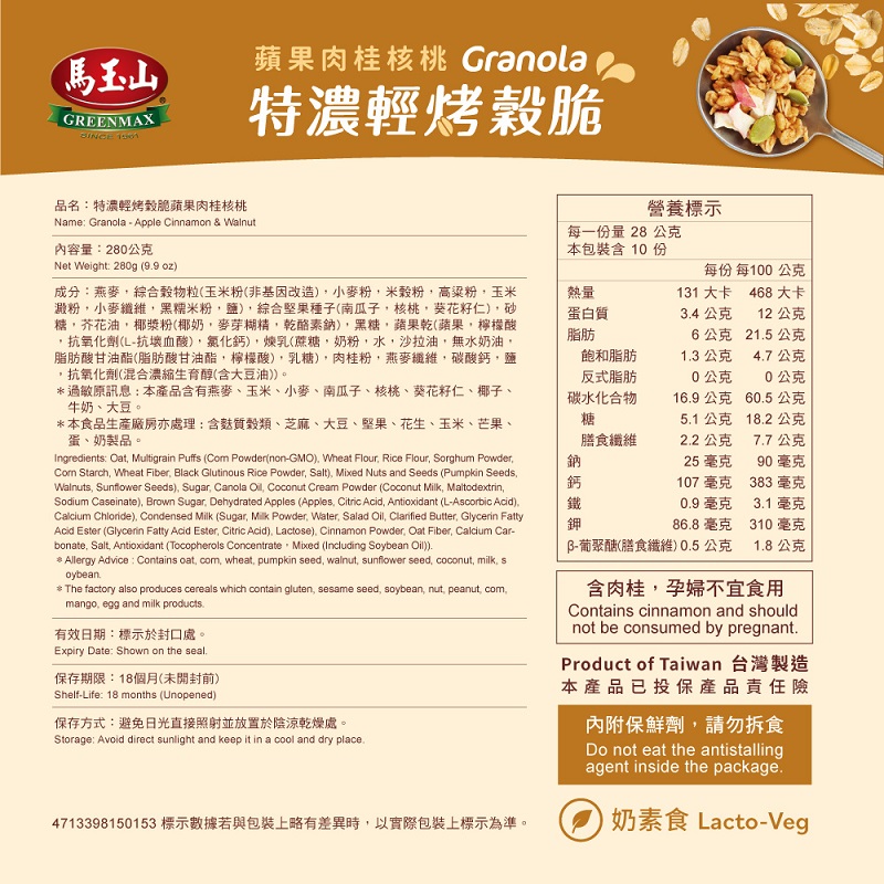 ◎Brand:馬玉山 ◎Specifications: 280g克 x 1 x 1Bag袋