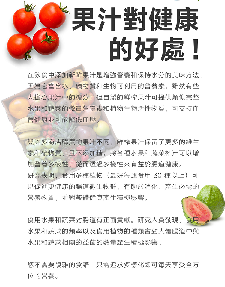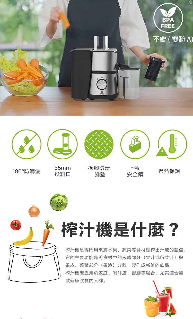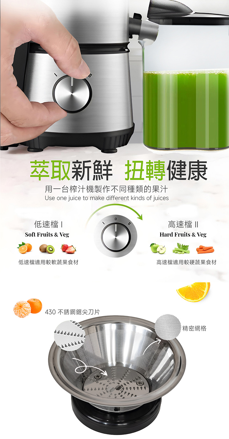 獨創研發改良慢速榨汁,保留更多自然純淨營養成分