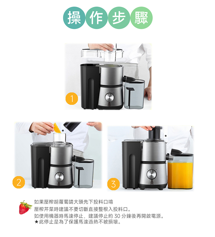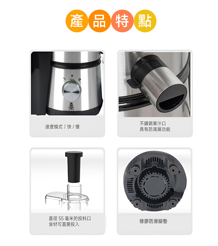 超大入料口,蘋果、紅羅蔔免切,自動去籽削皮除渣一次完成,省時方便好操作