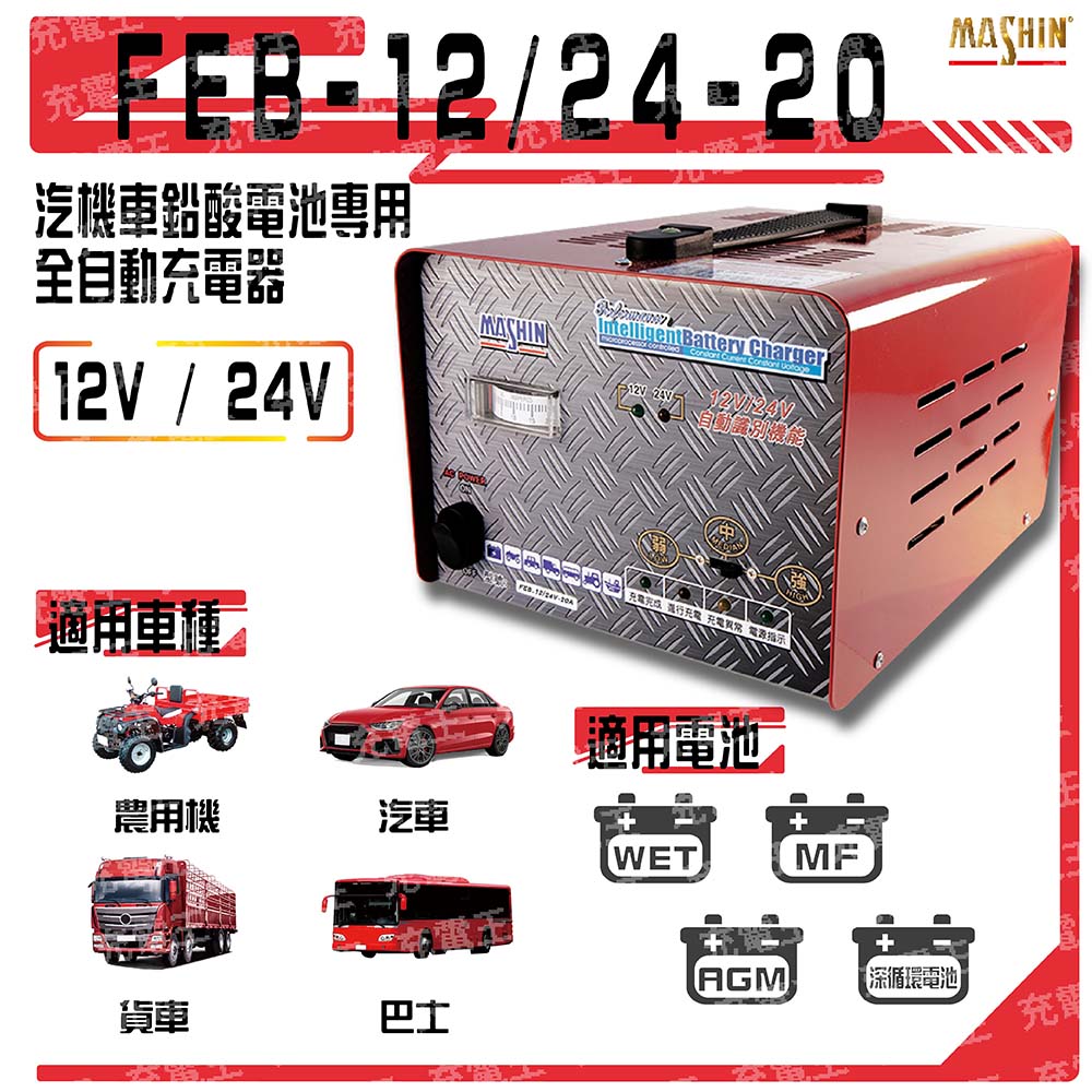 汽貨車專用全自動鉛酸電池充電器12V/24V電壓自動偵測電流7A/14A/20A可調整電池異常停機保護