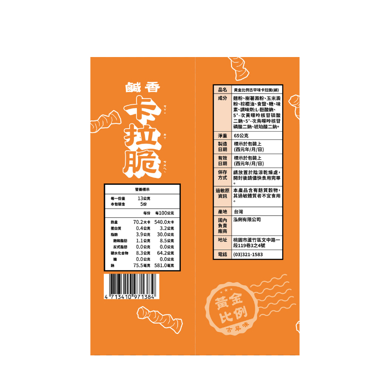 古早味卡拉脆,懷舊再現:以傳統台灣卡拉脆為靈感,復刻經典鹹香風味,喚醒您對小時候零食攤的美好回憶。