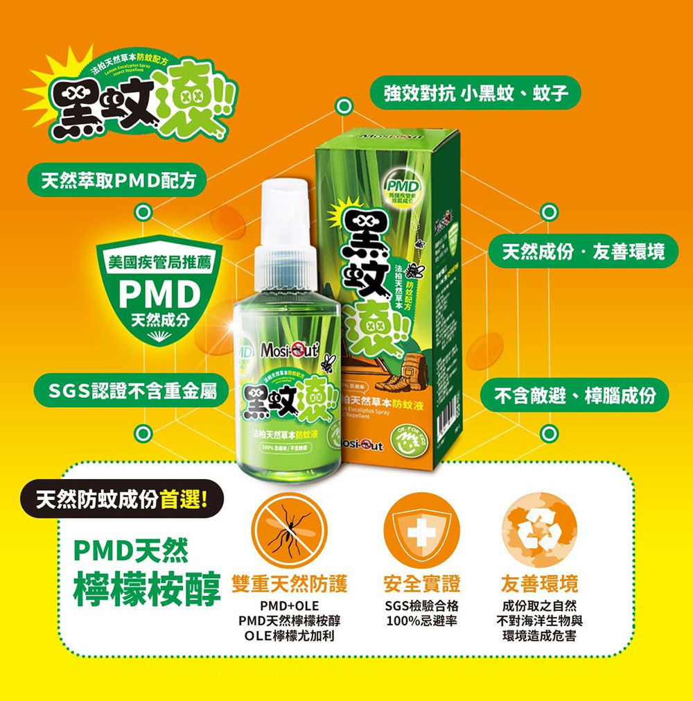◆採用美國疾病管制局推薦天然有效成分:檸檬桉醇PMD / 檸檬尤加利OLE(Oil of Lemon Eucalyptus)◆經由國家指定測試機構測試5.5小時內達100%忌避率(實驗室)◆預防"小黑蚊"的終極配方◆孕婦及三歲以上孩童適用,不含樟腦成分香調:檸檬尤加利 產地:台灣精油產地:歐洲台灣生產製造主要成分:檸檬尤加利精油(OLE) / 檸檬桉醇(PMD)使用方式:噴於肌膚後均勻塗開,而為達防蚊之持續性,補噴可依個人體質及使用狀況,自行調整。