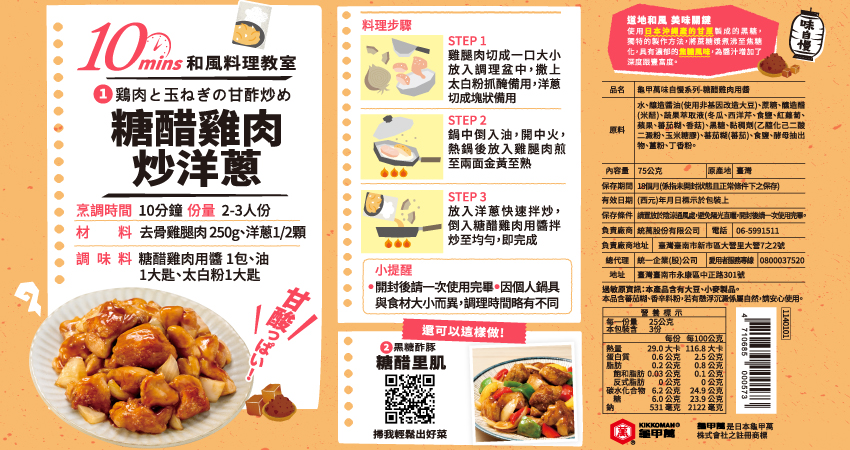 4/8-4/21 龜甲萬指定品折扣後滿$159贈龜甲萬味自慢醬包-糖醋雞肉用醬​ 一包(不累贈,數量有限送完為止;到店取貨及超商取貨不適用;依購物車帶出為主)