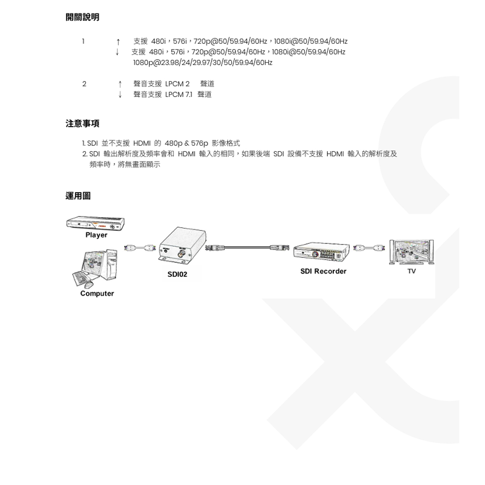 -最高SDI影像解析度達3G-SDI,HDMI達1080p@60Hz。