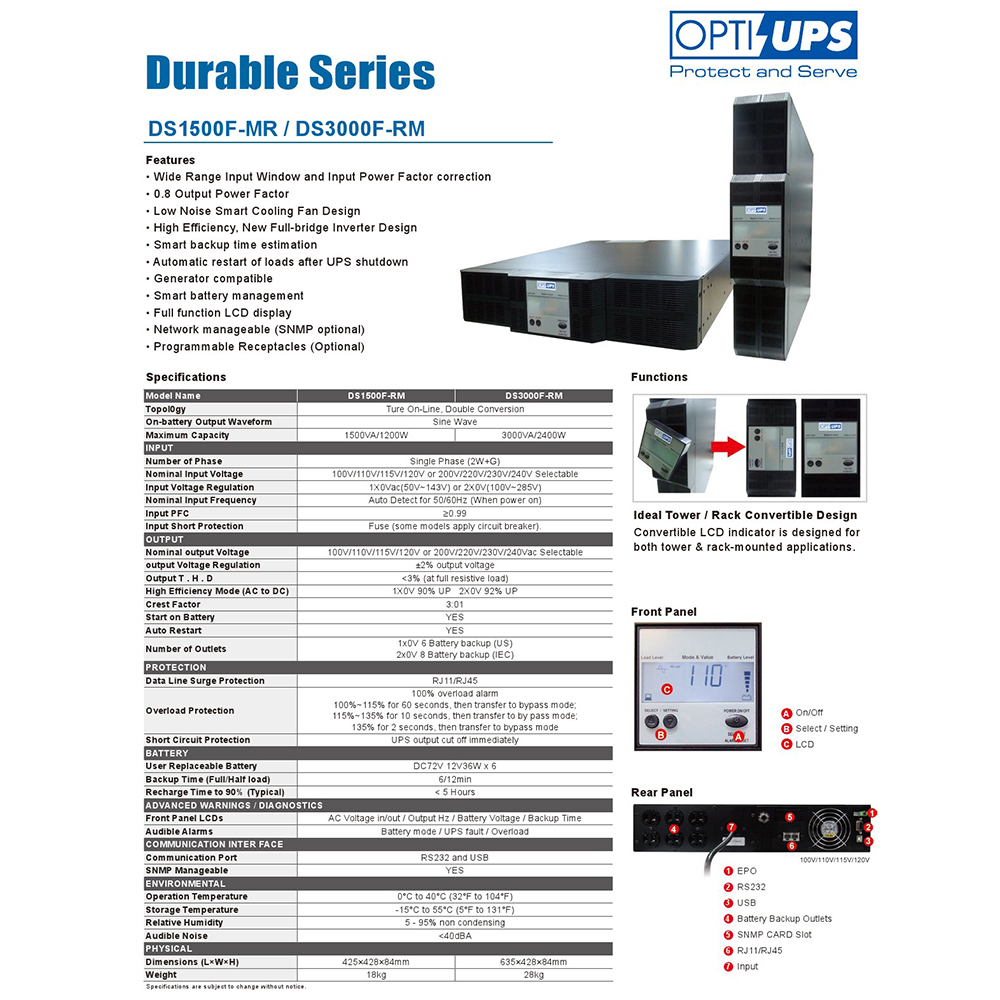 昌運監視器 OPTI-UPS蓄源 DS3000F-RM 110V 持久型在線機架式不斷電系統 3000VA/2400W
