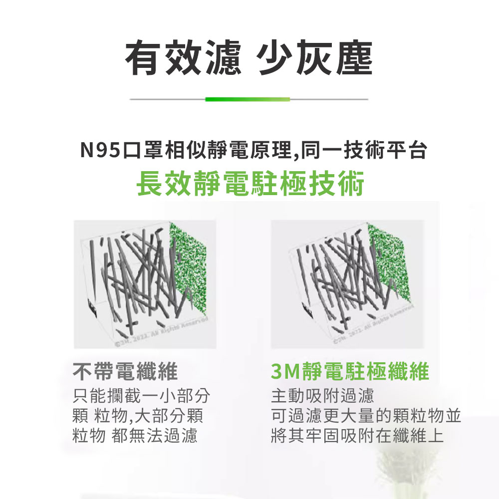 ◆3M三合一空氣淨化系統:靜電吸附,纖維攔截,透氣送淨風。搭配全新Self-interlock長纖維材質,更利於捕捉纏附汙染物,實現高效率、高透氣、高容塵之淨化效果。