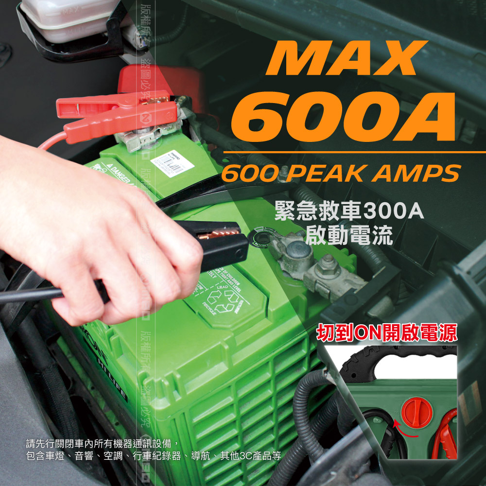 👍汽車緊急發動,600A最大瞬間電流、300A啟動電流。