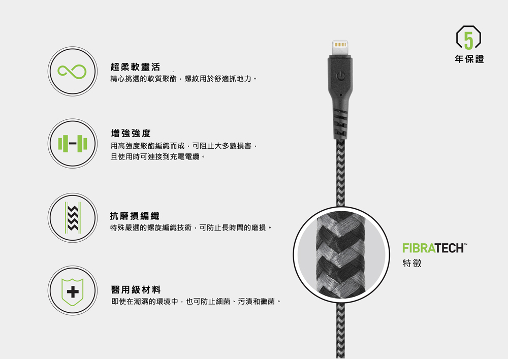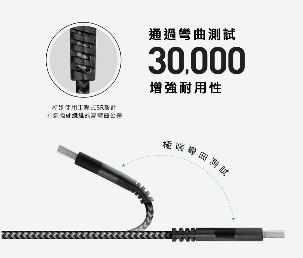 通過50kg嚴格拉力測試/經3萬次搖擺彎曲測試