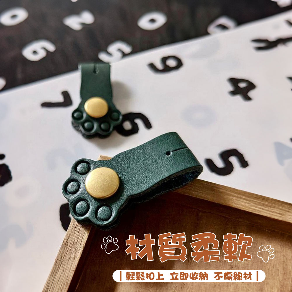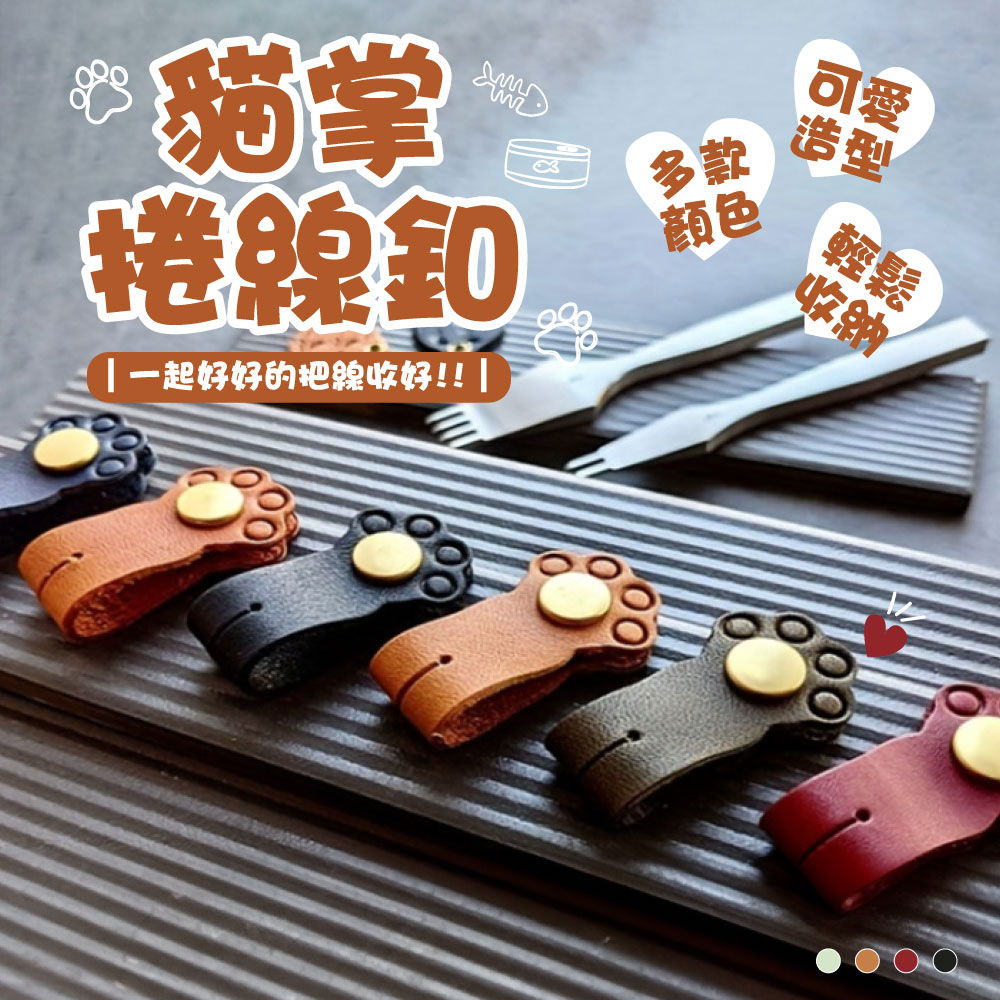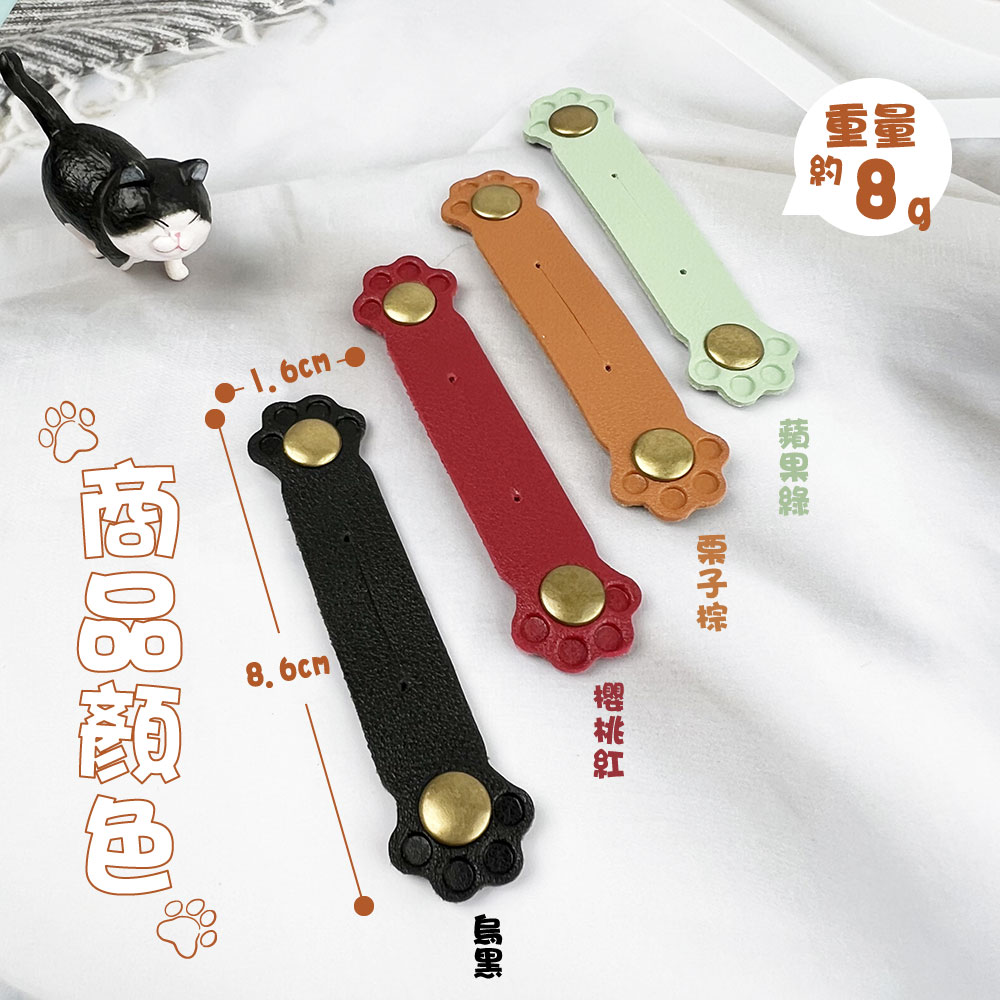 貓掌捲線釦 😺🔗商品特色:輕鬆收納:貓掌捲線釦設計精巧,可輕鬆捲線,使收納更加方便。可愛造型:采用可愛的貓掌造型設計,增添趣味性,讓收納變得更有趣。多款顏色:提供🖤烏黑、🤎栗子棕、❤️櫻桃紅、💚蘋果綠等多種顏色選擇,滿足不同喜好。仿皮革材質:採用仿皮革材質,手感柔軟舒適,質感佳。整齊收納:告別凌亂桌面,使用貓掌捲線釦可以將線材收納整齊,讓桌面更加整潔。防止線才打結:使用貓掌捲線釦,可以防止線才打結,方便攜帶且使用。商品規格:尺寸:8.6*1.6cm重量:約8g顏色:🖤烏黑/🤎栗子棕/❤️櫻桃紅/💚蘋果綠貓掌捲線釦不僅外觀可愛,而且功能實用,是收納線材的好幫手,讓您的生活更加便利有趣。