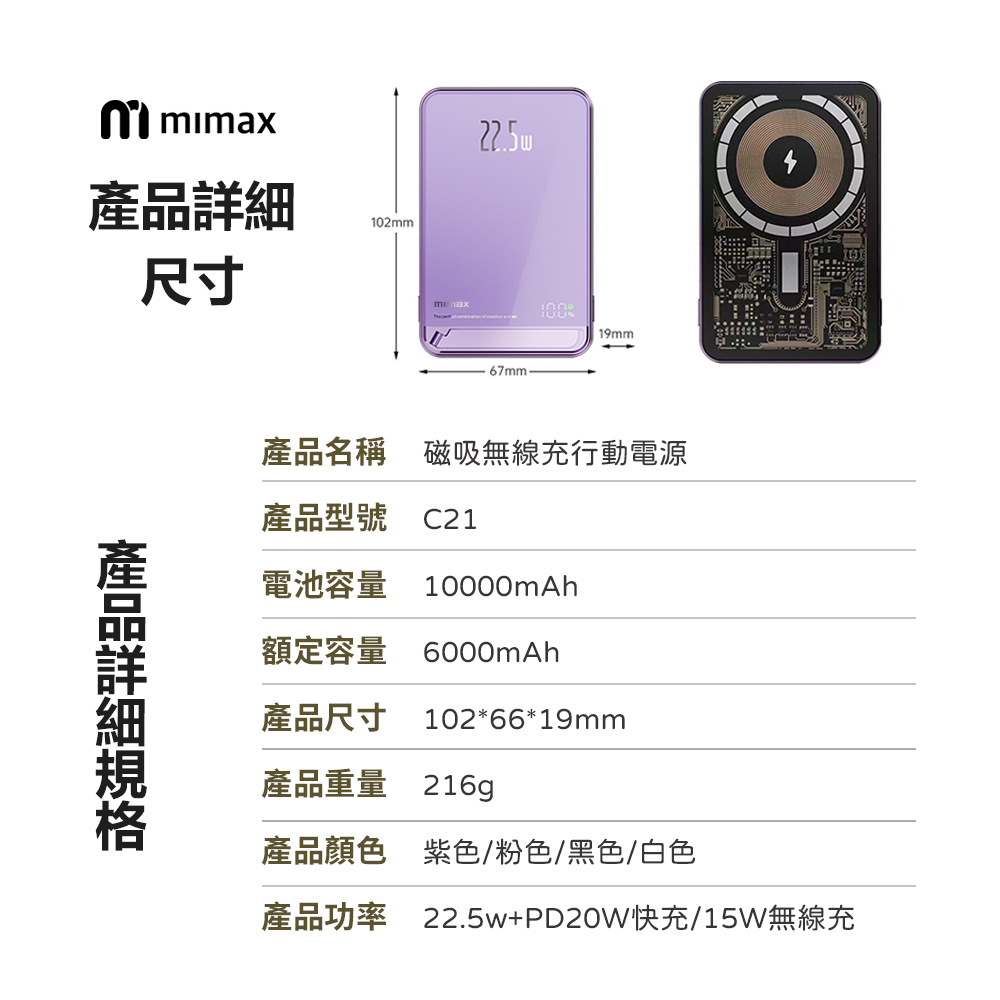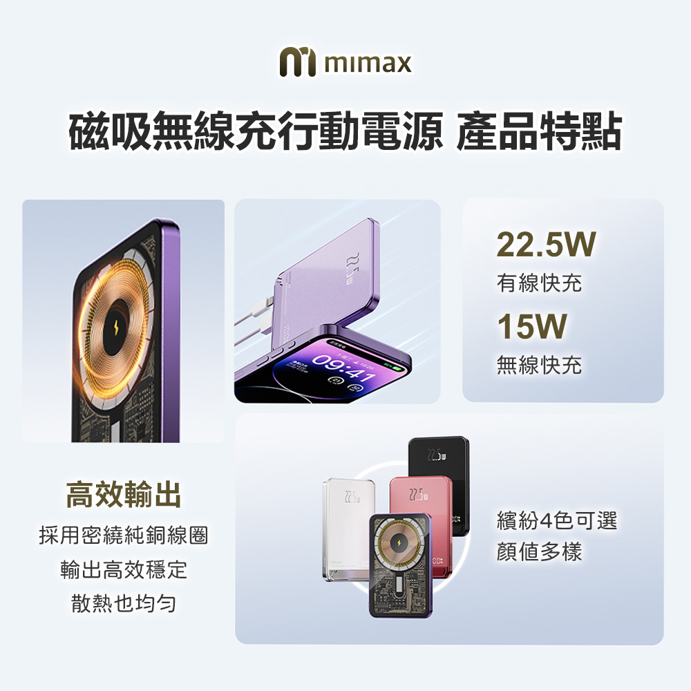 Mimax MiMi Magnetic Wireless Charging Stand Power Bank 10000mAh, Slim & High Capacity