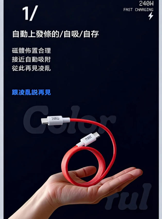 ⚡「快充磁吸電綫」重磅登場!這條 240W 全磁吸快充線直接把充電變「指尖療癒體驗」|多色自吸自存黑科技霸氣來襲欸你沒看錯‼每回收線都像施展魔法,從此跟線材纏繞、接口對準的煩惱說再見🥳##充電線也能當桌面裝飾這次直接把顏值與實力拉滿~被問「什麼時候出「既好收又能快充」的多色快充磁吸線」的私訊真的沒!停!過!黑科技體驗一次到位✨✅糖果磁吸快充系爽炸開賣啦🔥重點是:顏值實力雙線不打折!✅充電線天花板實力全開❄磁鐵自吸自存:磁體位置精準對位,靠近即自動吸附成圈,線材從此不散、不擠、不亂,收納不用費力理線🔥240W 自適應快充:向下兼容手機 / 平板全設備,搭配 E-Marker 芯片,快充不傷機還能同步傳輸數據💧編織綫:1.0m 高彈編織線身,經數次拉扯彎折測試不斷裂,揣進牛仔褲口袋也不怕磨損🐱五色任選:黑 / 紅 / 橙 / 藍 / 粉五色任選,多線並存也能自動吸附,桌面秒變「色彩收納風景」充電像把玩指尖彩虹還不添雜亂,這波必須衝🚀今年就讓這條線變成你的「數碼生活省心神器」~不管是 設計師要桌面顏值、多設備黨要兼容、通勤黨怕線亂、遊戲黨要快充,用它就對了!全磁吸自存 × 240W 快充 × 彩虹編織這條線全辦到✅✨多色高彈編織,質感滿分不勾絲還防纏繞✨可盤成掌心大小,塞進包也不佔空間✨多色混搭吸附,桌面直接變「數碼收納藝術」📌充電線黑科技一次看懂🔬磁鐵定位技術:磁體布局合理,靠近即自動吸附成圈,收納效率直接拉滿🔒E-Marker 智能芯片:240W 滿功率快充 + 數據傳輸,快充同時守護設備安全💡高彈編織工藝:線身柔軟度剛好,既不軟塌纏繞,也不僵硬難彎,躺平 / 辦公充電都順手📌產品規格一次秒懂名稱:糖果磁吸C-C認證240W快充線 1M (編織充電線/磁吸自動吸附)2入組顏色:蜜粉 /天藍 / 暖橘 / 櫻紅 / 深黑(五色可選)材質:TPE + 多色編織綫 + 加粗銅芯 + E-Marker芯片規格:1.0m充電特點:240W 白適應快充 / 數據傳輸 / 磁吸自存適用場景:手機 / 平板 等 Type-C 設備通用產地:PRC(中國台灣監製)❤這麼頂的彩虹磁吸線還只要親民價,充電從此擺脫線亂、充電慢、顏值低,錯過這款快充線,真的會後悔一整個數碼季!📌糖果磁吸 240W 快充線|限量販售中 #磁吸自存零凌亂 #240W 快充兼容黨 #五色彩虹桌面時尚 #數碼省心神隊友