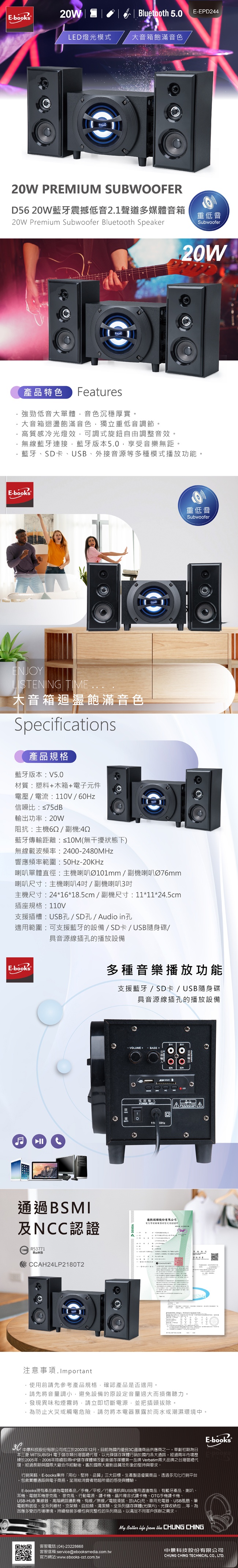 E-books D56 20W Premium Subwoofer Bluetooth Speaker