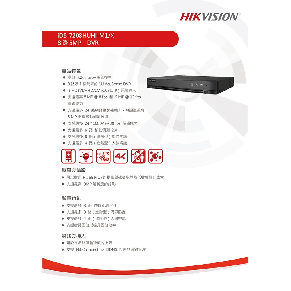 昌運監視器 海康 iDS-7208HUHI-M1/X 8路500萬DVR硬碟錄影機 支援800萬攝影機 只買主機不含硬碟