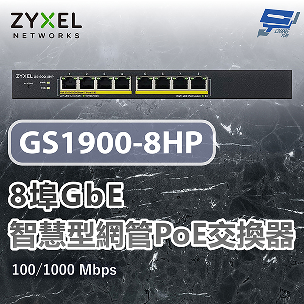 昌運監視器 ZYXEL 合勤 GS1900-8HP 8埠GbE智慧型網管PoE交換器 100/1000 Mbps