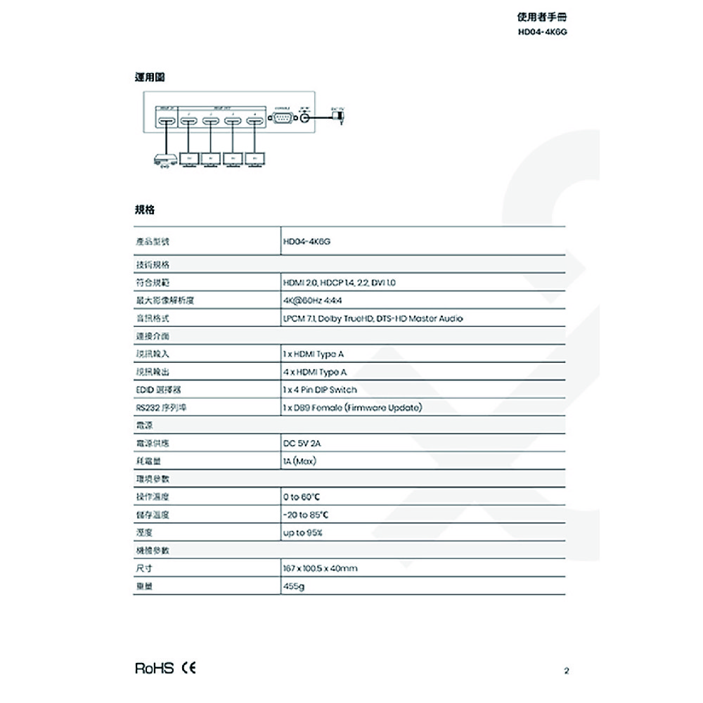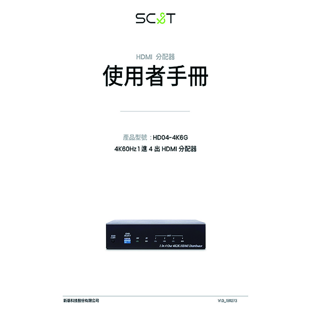 昌運監視器 HD04-4K6G 4K60Hz 1進4出HDMI 分配器 支援EDID管理功能