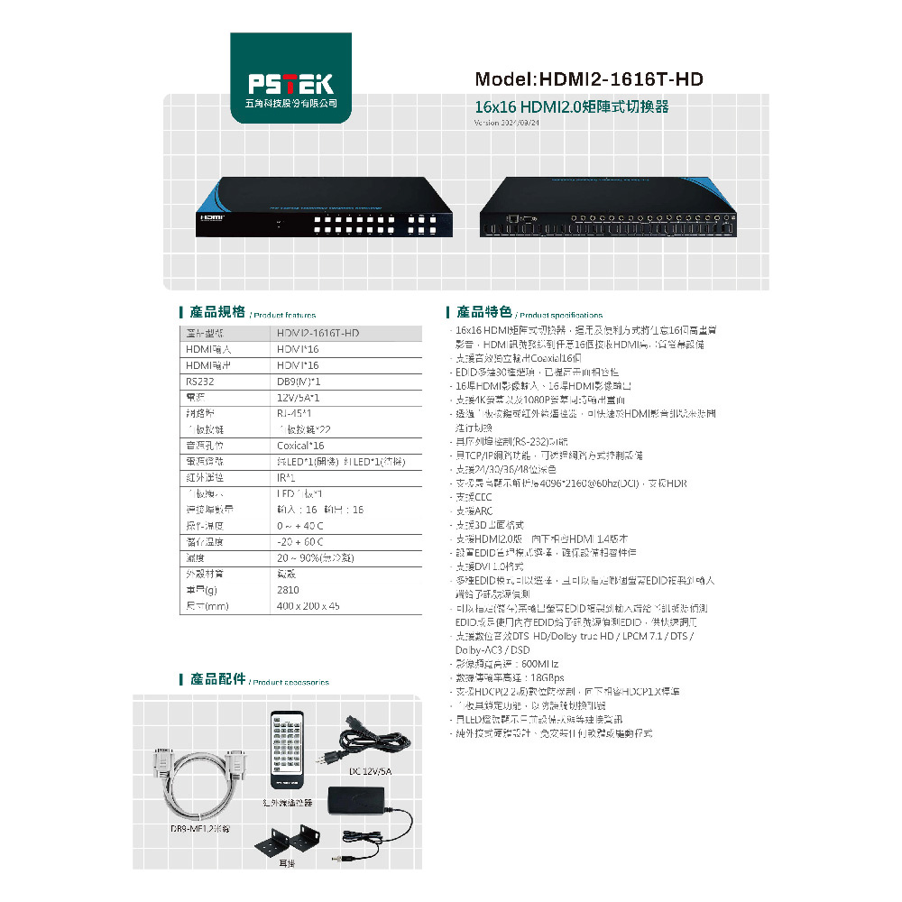 昌運監視器 HDMI2-1616T-HD 16x16 HDMI2.0矩陣式切換器 支援3D畫面格式 支援CEC