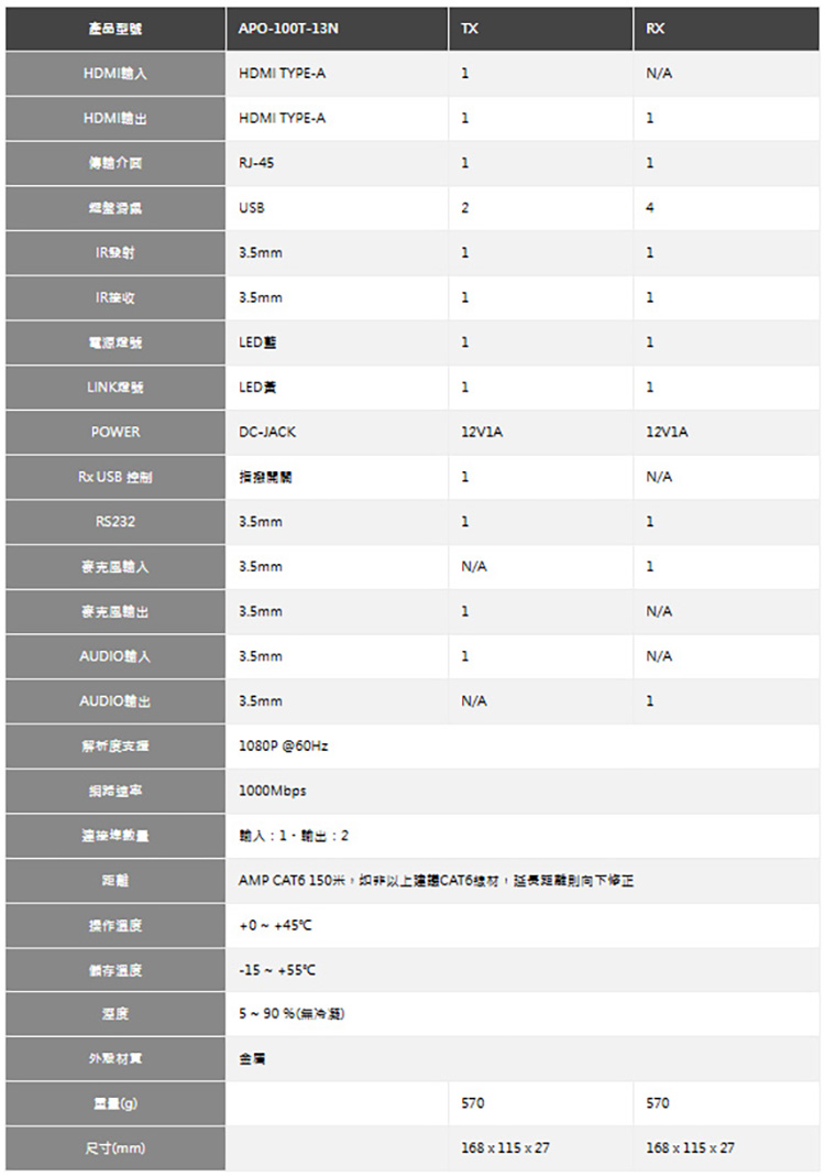 •支援DDC規格,達到發射端輸出設備正確可取得接收端螢幕資訊