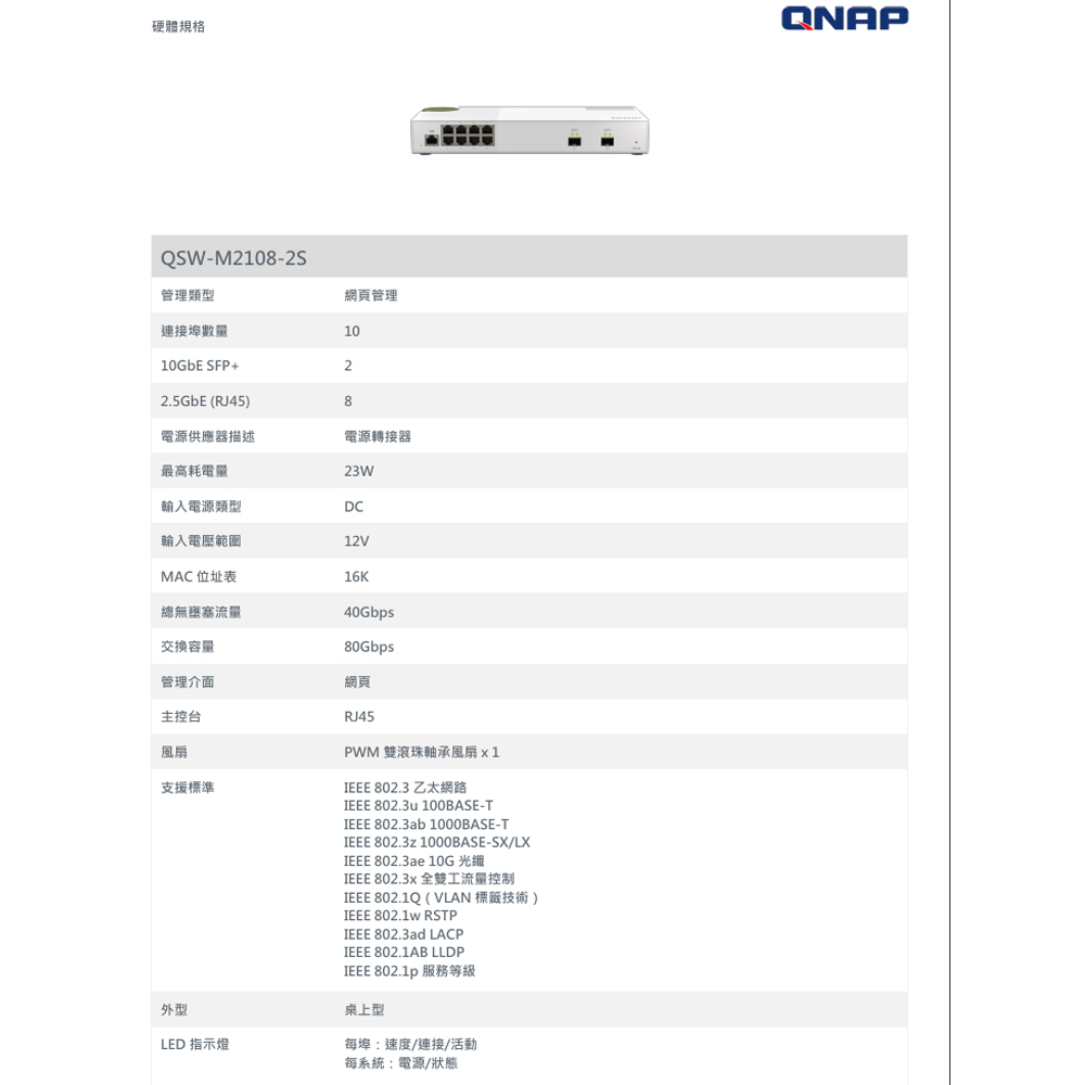 昌運監視器 QNAP 威聯通 QSW-M2108-2S L2 Web 管理型交換器10GbE/2.5GbE