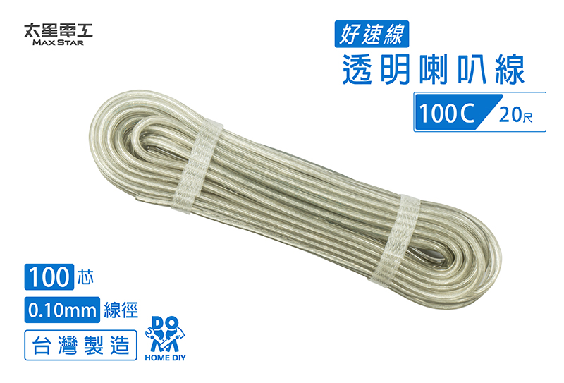 【MAX STAR】Hi-Speed 100C Transparent Speaker Wire 0.10mm × 100C / 20 ft