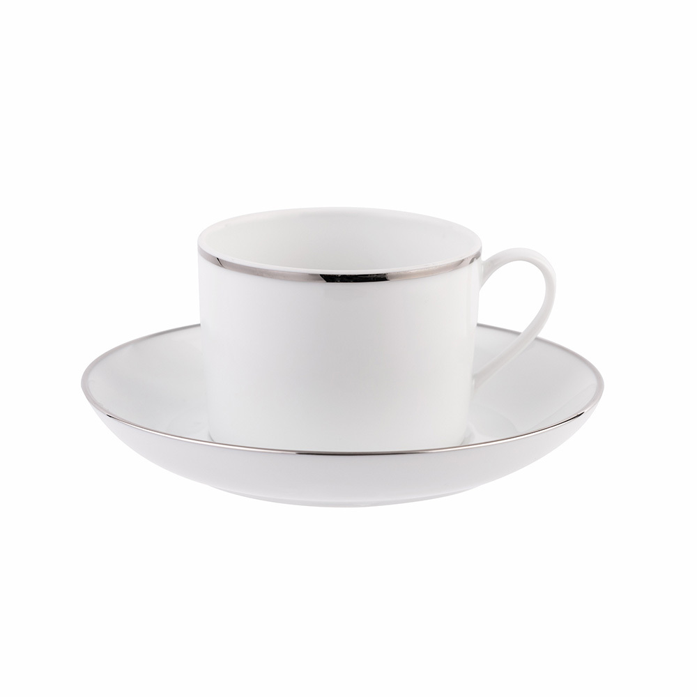 LEGLE-Mil Shaped Cup and Saucer with Silver Rimming