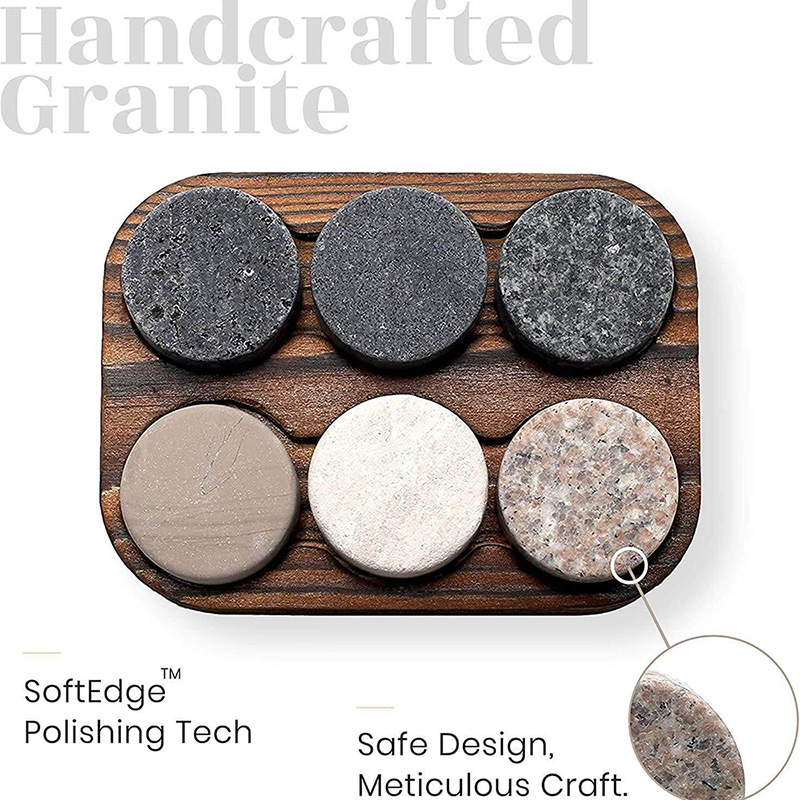 威士忌冰酒石 x 6威士忌冰酒石,每塊都有不同的顏色和花崗岩紋路,可快速冷卻、但不稀釋酒的口感冰酒石座 x 1R.O.C.K.S.™️ 經典冰酒石座,可擺放6塊冰酒石冰酒石使用方法: