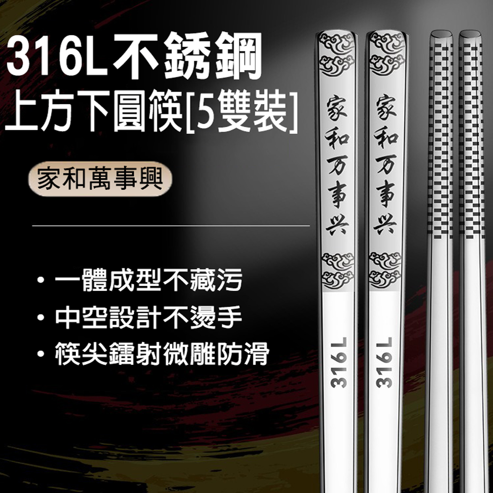 316L Non-slip Stainless Steel Square Chopsticks, 5 Pairs, Antibacterial Chopsticks, Restaurant Chopsticks, Non-slip Chopsticks, Heat-resistant Chopsticks, Portable Chopsticks, Square Chopsticks with Round Bottom