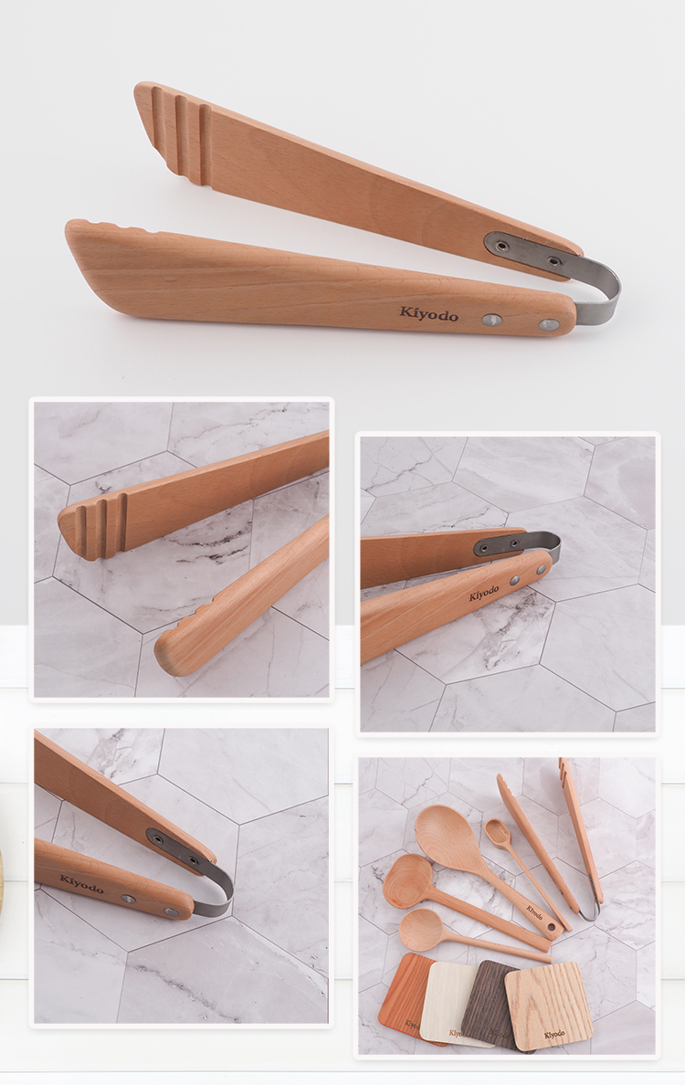 天然山毛櫸原木材質,木料理夾不同於一般金屬料理夾 ,使用時不傷鍋具表面不會產生刮痕,與金屬相比不會影響食物本味,更能夠享受食物的原味,高堅硬度,高耐久特性,耐腐蝕性,使用壽命大大延長,好沖好洗,多用途使用,可當沙拉夾、食物夾使用。