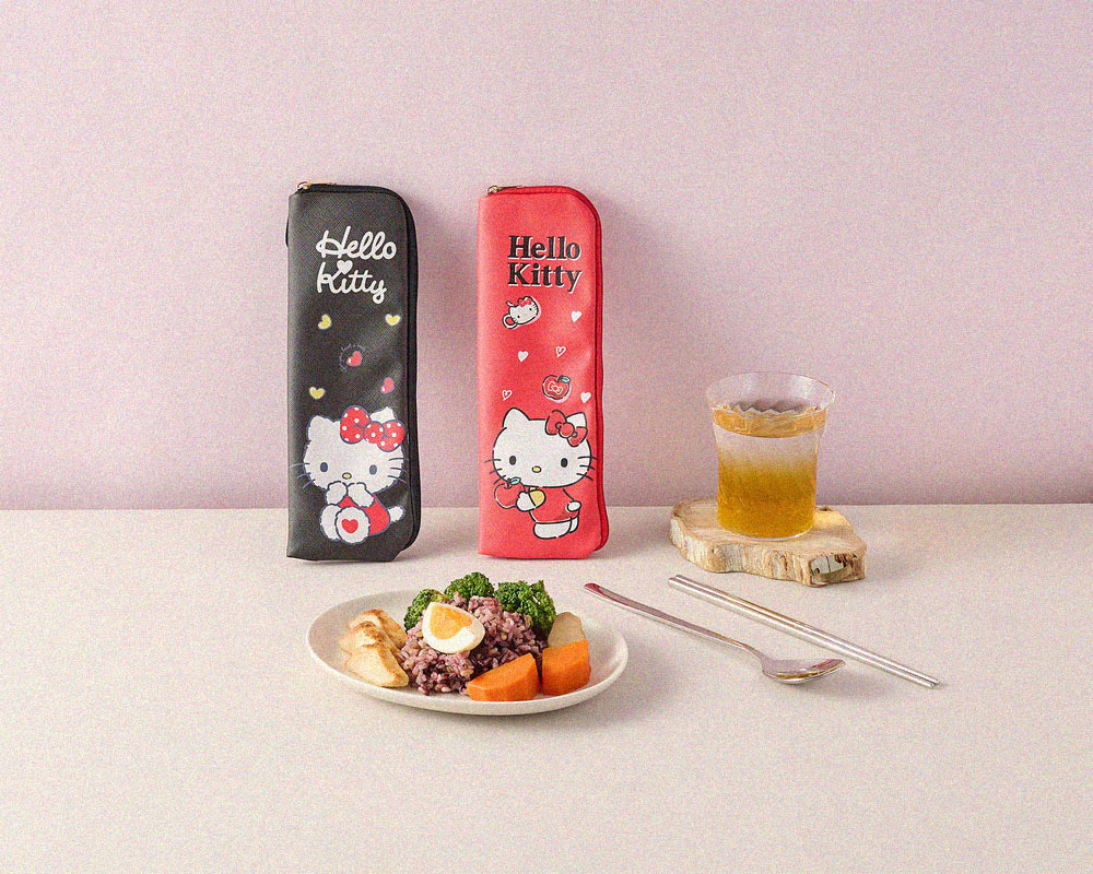 SANRIO - Hello Kitty Simple Cutlery Set - Black Heart Design (Two Pieces)