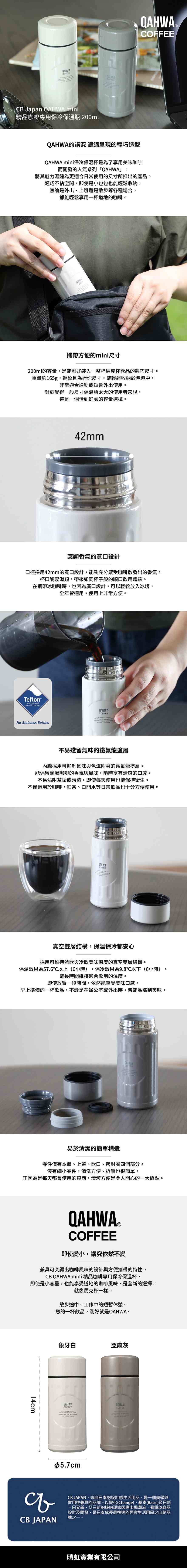 材質:內膽-不鏽鋼 (鐵氟龍加工)外瓶-不鏽鋼 (壓克力樹脂塗層加工)杯蓋、飲口-聚丙烯密封圈-矽膠保溫效果:57.6℃以上(6小時)保冷效果:9.8℃以下(6小時)尺寸:φ57xH140mm容量:0.2L重量:165g產地:日本授權中國生產