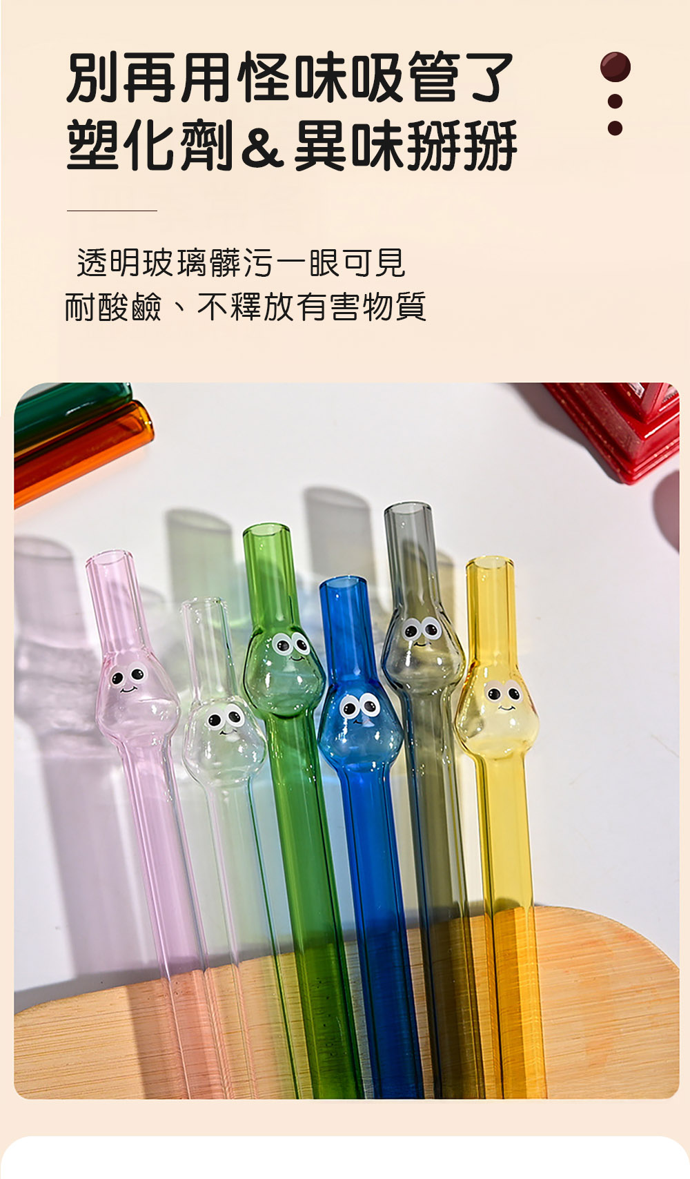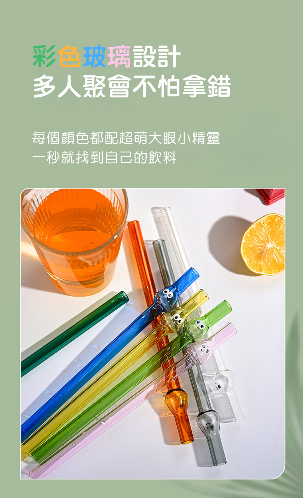 讓**「小精靈表情彩色玻璃吸管」**拯救你的午茶時光!