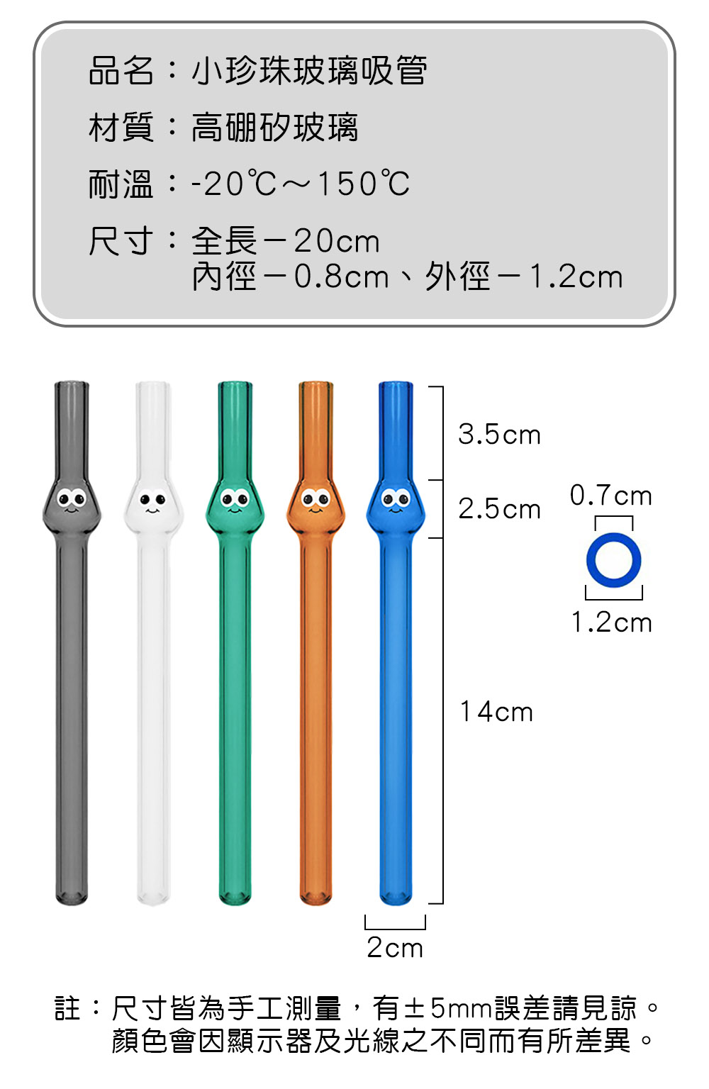 尺寸:長度約 20cm、吸管口 外徑1.2cm/內徑0.7cm