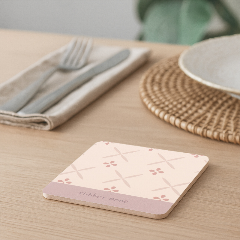 【Monster】 Soft Diatomaceous Earth Absorbent Coaster – Floral Tile Series (10x10cm) – Pink & Brown Tile Memories