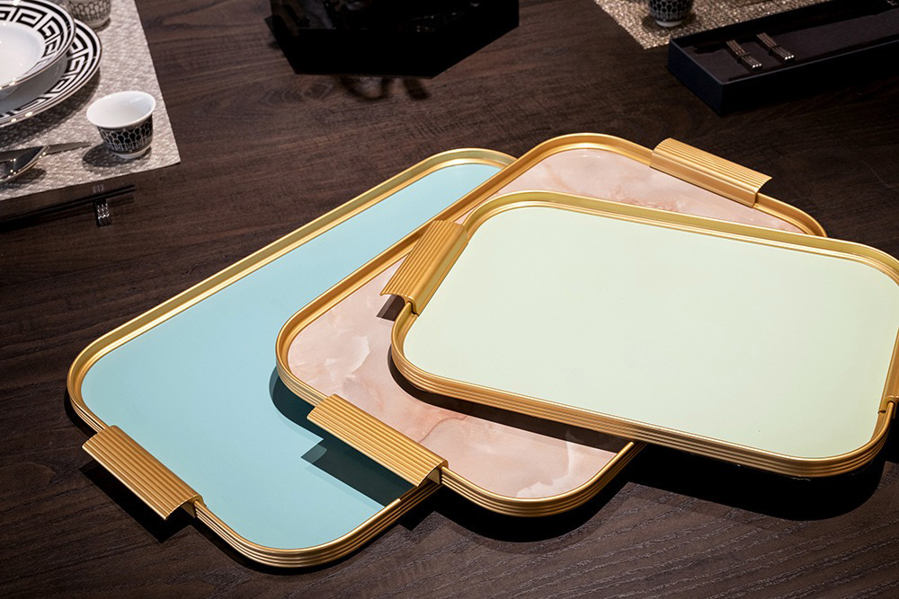 品名:Kaymet 長方托盤 51x33cm 金邊+粉岩石