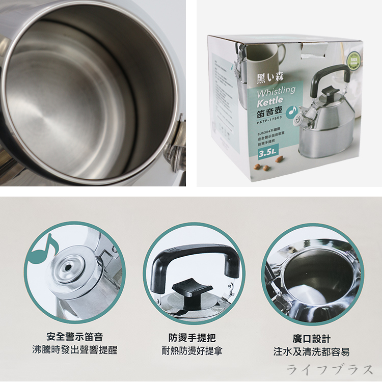 通過SGS檢測合格,全壺採用304不鏽鋼材質,堅固耐用品質優良,導熱均勻快速節能省時,優雅造型體面大方,壺蓋響音提醒功能設計,讓您可以隨時掌握水沸騰的時間,不在廚房內也可聽到聲音,使用安全,耐高溫防滑把手設計好握好拿,出水孔加蓋設計,防止異物侵入,適用電磁爐、卥素爐、電爐、瓦斯爐,完美結合實用與美學 ,讓每次煮水都充滿愉悅感。