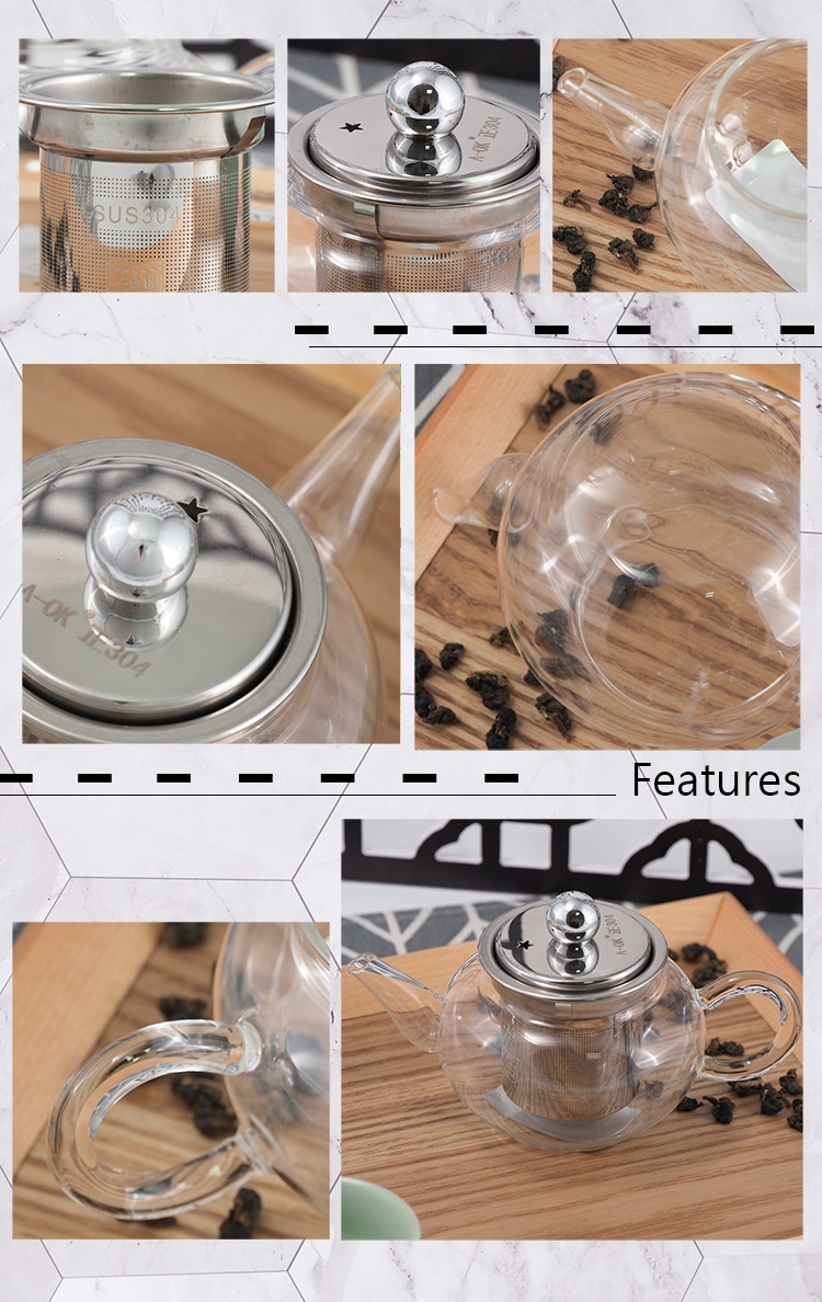 採用高硼硅耐熱玻璃材質,冷熱水OK耐冷熱溫差,可泡茶也可當花茶壺,大口徑清洗容易,304不銹鋼極細濾孔高密度濾網設計,適合沖泡茶葉、花茶,可使各式茶葉充分浸泡萃取精華,沖泡中色澤一目了然,展現優雅風采,提升時尚精緻感。
