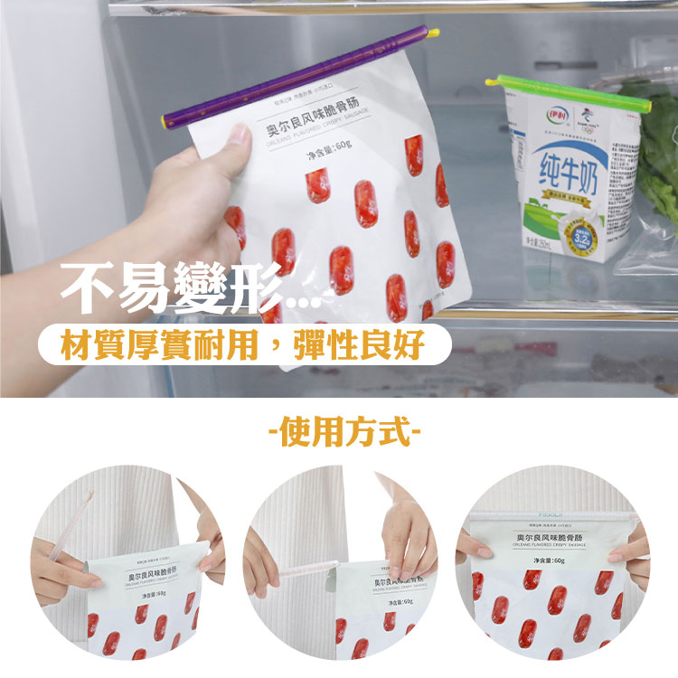 食物吃不完 會軟掉!!不知道該如何好好收納食物密封夾 讓你保存食物方便收納不佔空間◆密封性好,封口時無需摺疊包裝◆人性化設計,一壓一扣,使用輕鬆便捷◆有效保持食物新鮮,可重複使用商品尺寸 : 36/23/19/16/12/10cm商品材質 : 塑料